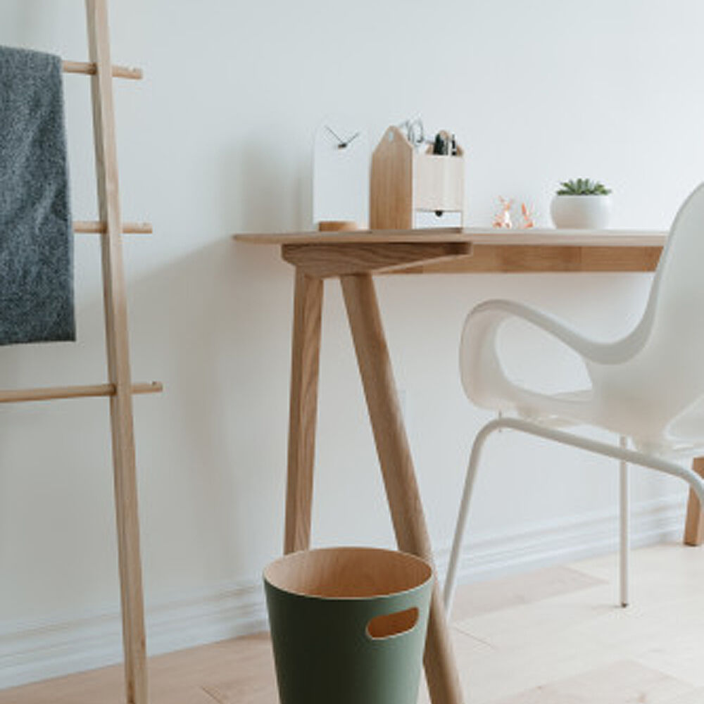 天然木を丁寧に曲げて作られた、美しい曲線が印象的で、単なるダストボックスとしてだけでなく、まるでインテリアの一部のように、お部屋をモダンで上品な空間にしてくれます。