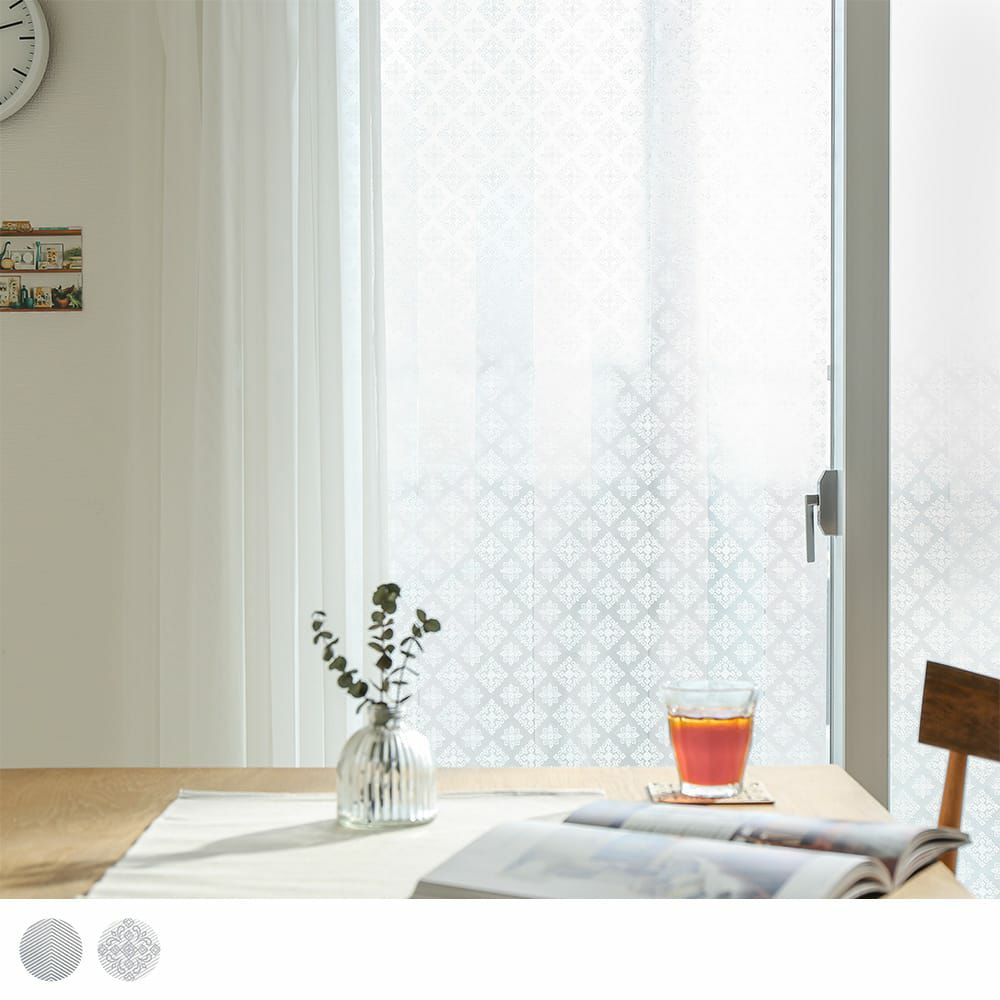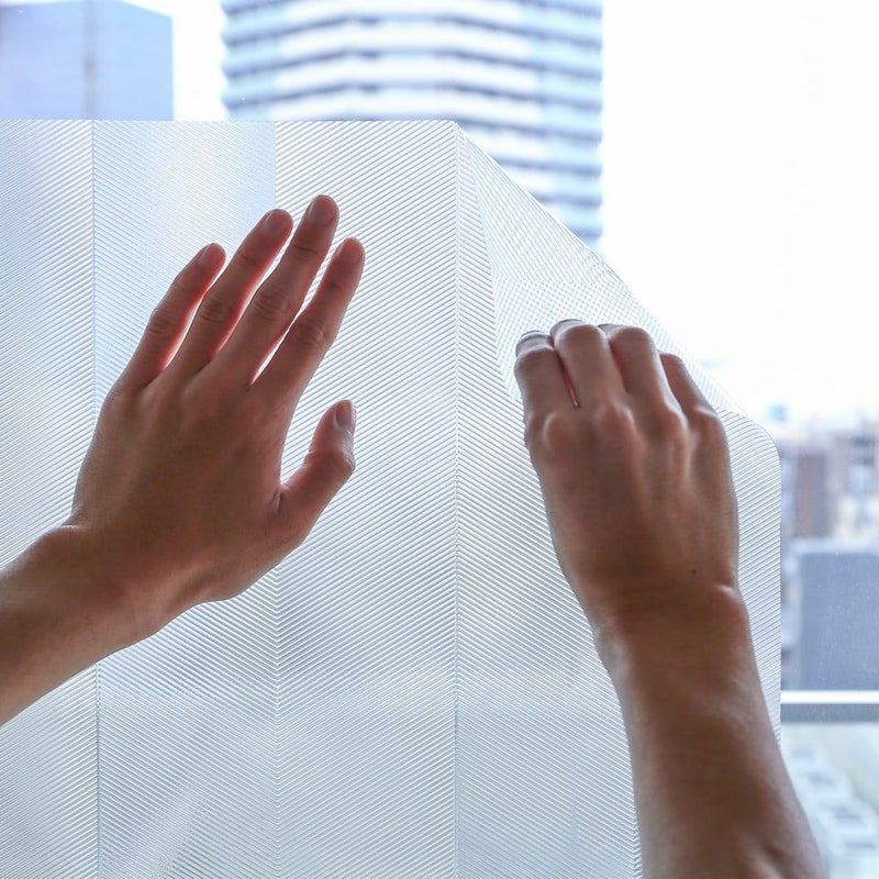 保護フィルムをはがして貼るだけのカンタン設置。ノリなしで何度でも貼りなおせるので、賃貸にもおすすめです。スキージーやタオルを使いながら空気を抜くと、綺麗に仕上がります。