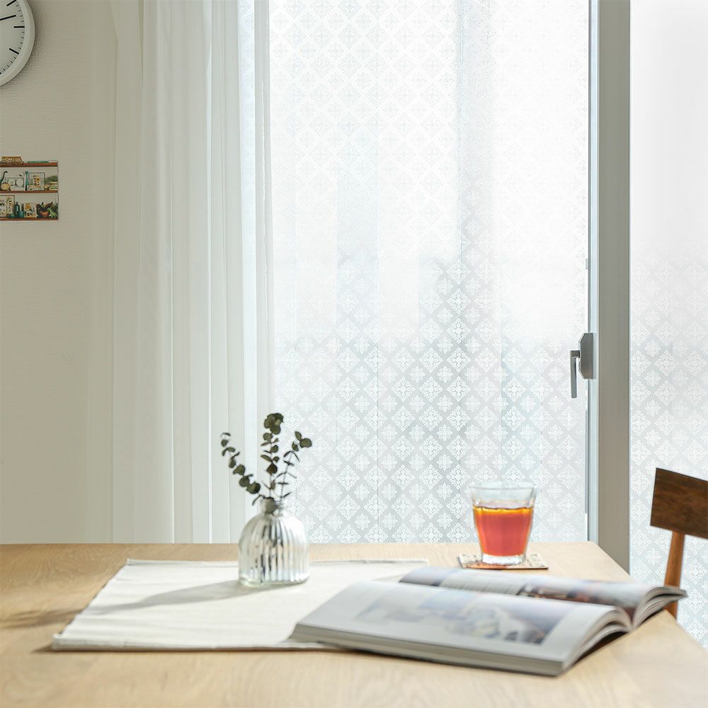 すりガラスのようにぼやけて、昼でも夜でも外から見えにくくなります。あなたの大切なプライバシーもしっかり確保。