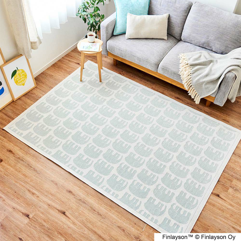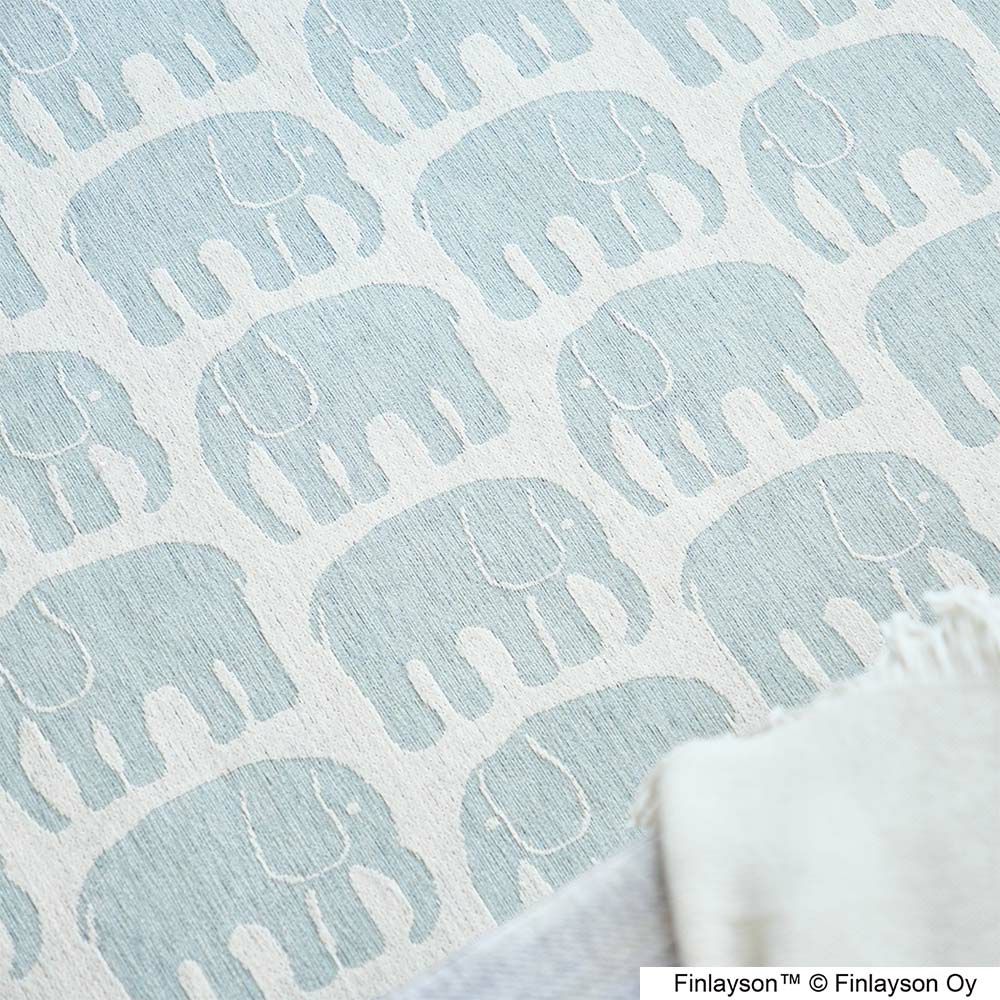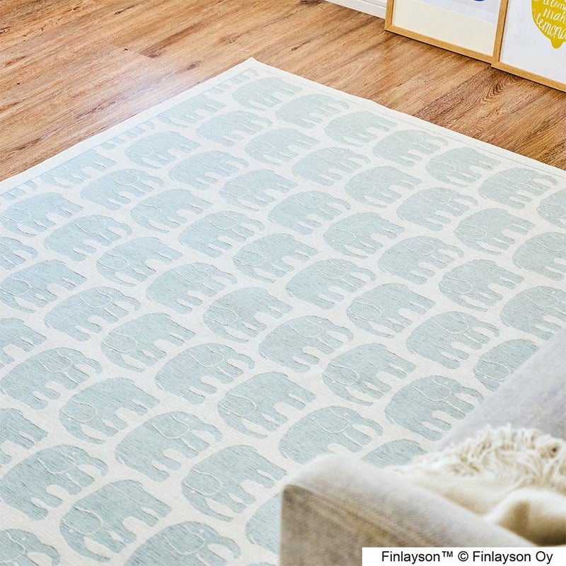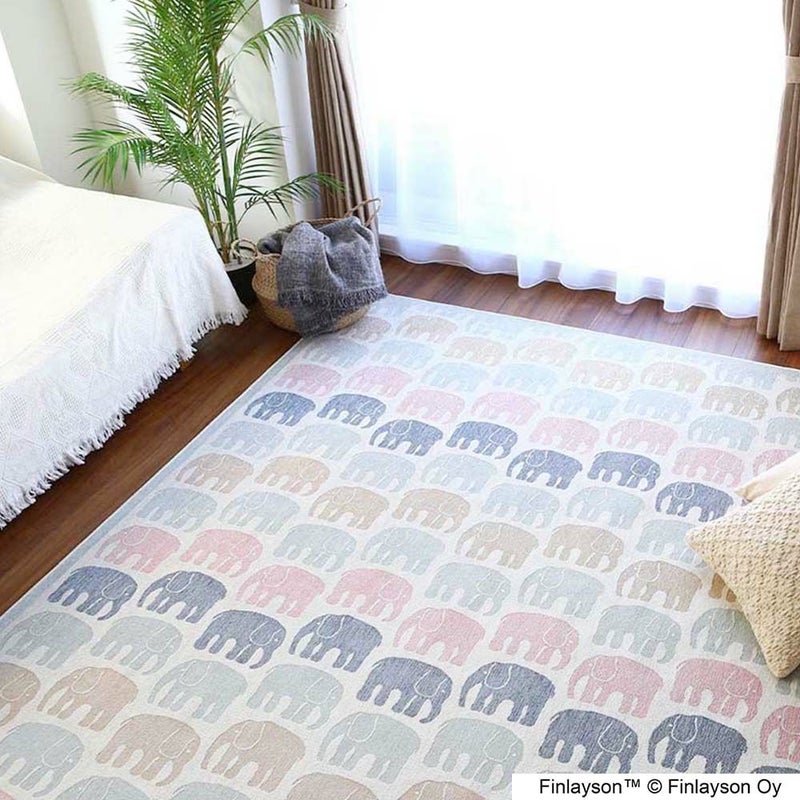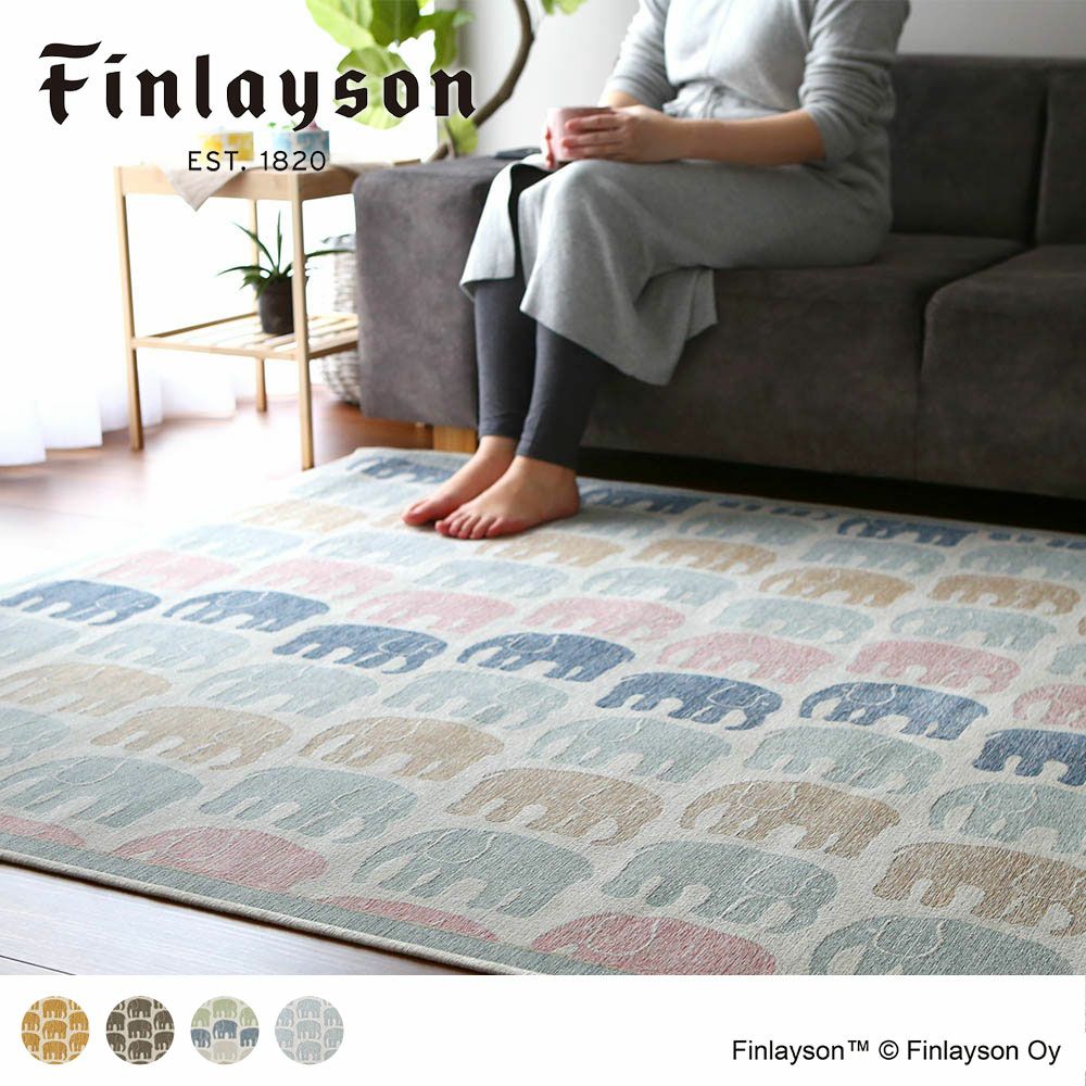 フィンレイソンの中でも特に有名な「エレファンティ」のデザインを、ゴブランシェニール織りで作り上げた上質ラグ。