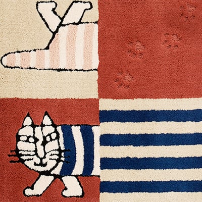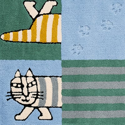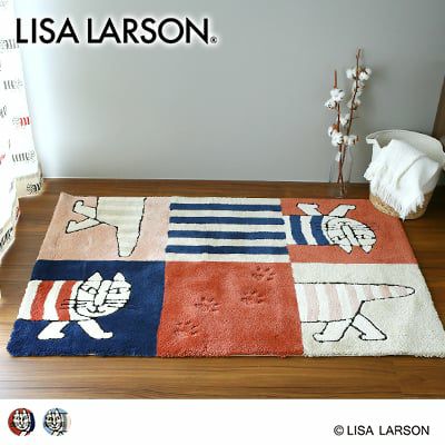 リサ・ラーソンのマイキーが北欧タイルの上をお散歩しているデザインラグ