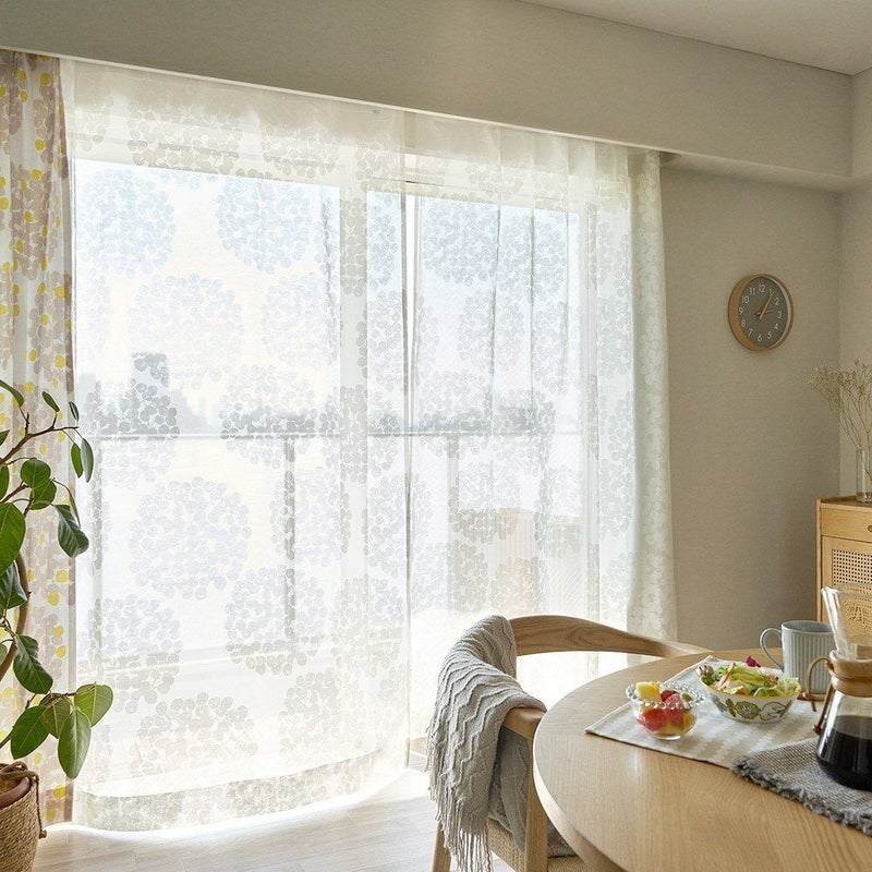 ふと差し込んだ光が、レース越しに模様を描く。そんな何気ない瞬間も、<レースフロート>があれば心に残る風景に変わります。白のアジサイ柄がそっと浮かび上がるたび、空間がやさしく整い、気持ちもふわりとほぐれていくよう。ただそこにあるだけで、暮らしに静かなときめきを添えてくれるカーテンです。あなたの窓辺にも、そんなやさしい彩りを取り入れてみませんか?