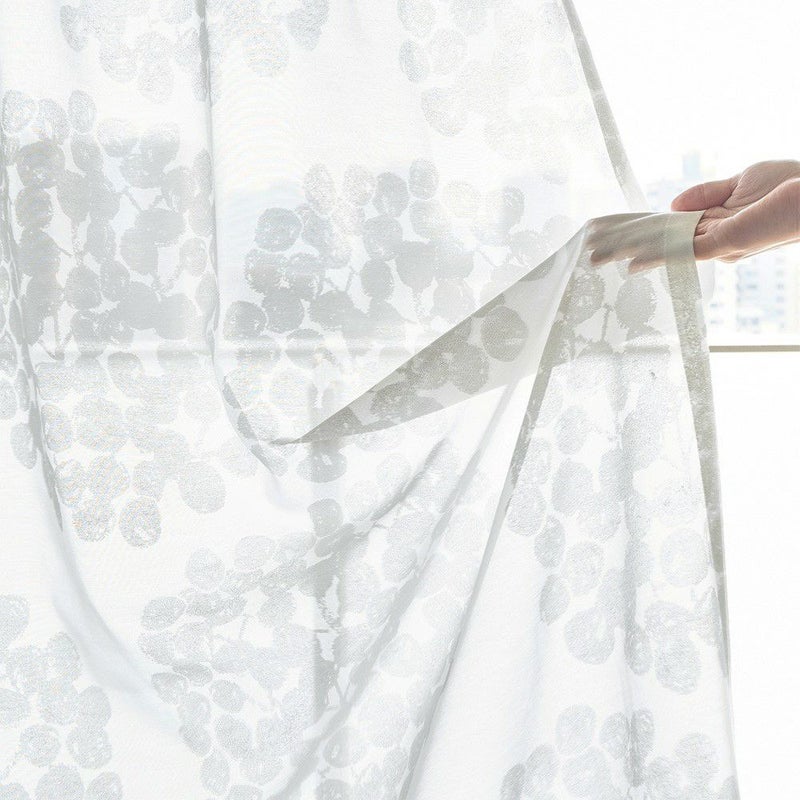 <レースフロート>は、光をふんわりと通すボイル生地ならではの軽やかな手ざわりが魅力。指先に感じるのは、さらりとしたやさしさと、ほんのりかすれたプリントの風合い。毎日のカーテンの開け閉めがちょっと心地よくなるような、自然体の手ざわりです。