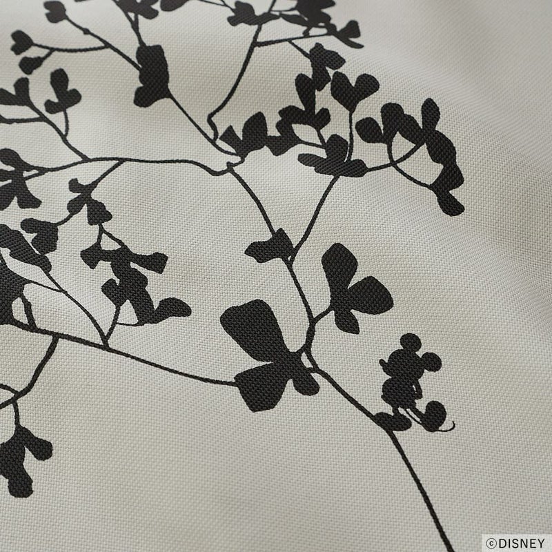 自然のリズムを感じさせるリーフ柄の中に、そっと遊び心を。さりげないミッキーがリーフ柄にすっと馴染みます。ひっそりと佇むミッキーが可愛いデザインです。