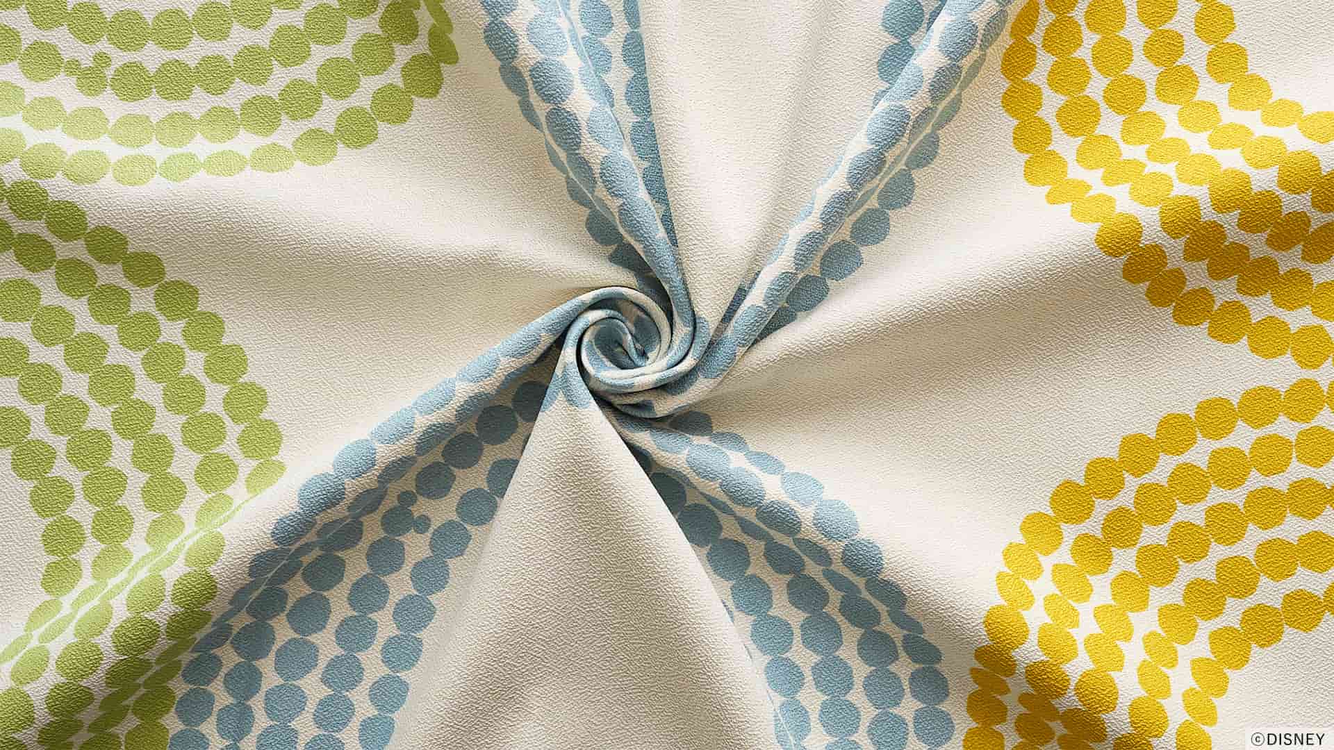 忙しい毎日の中でも、ホッと一息つける空間をつくりたい。そんなあなたにおすすめしたい、おしゃれなディズニーカーテンです。ドットで描かれた大きなリング模様の中に、さりげなく隠れたミッキーを見つけた瞬間、心がふっと和らぎます。北欧モダンの洗練されたデザインに、やさしい遮光性を添えた、心地よさと遊び心を両立する一枚です。