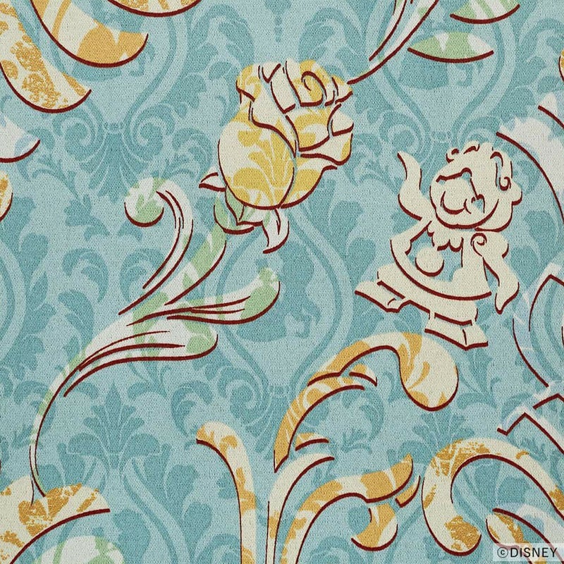 クラシカルなオーナメント模様の中に、ベルやルミエール、コグスワース、ポット夫人、チップ、そして象徴的な薔薇が、模様の流れにそっと寄り添うように描かれています。ふとした瞬間に物語の世界が感じられるようなデザインです。