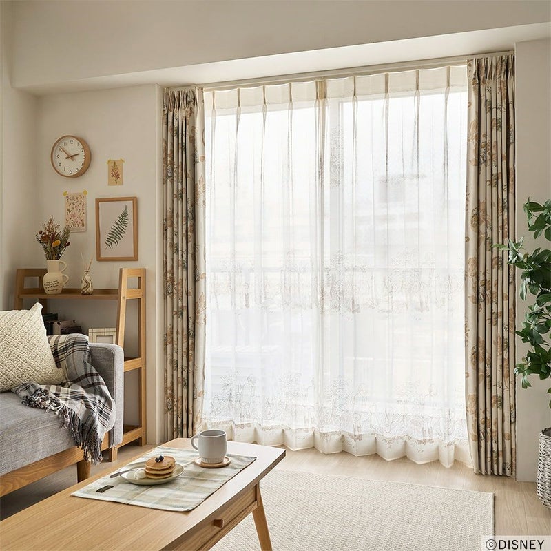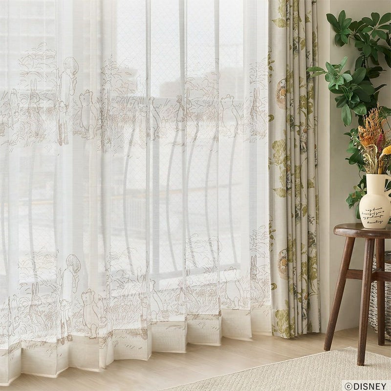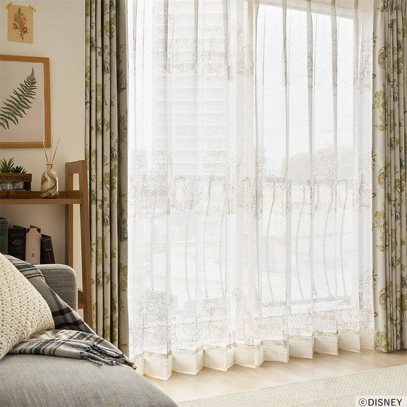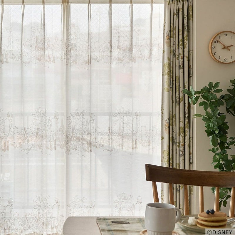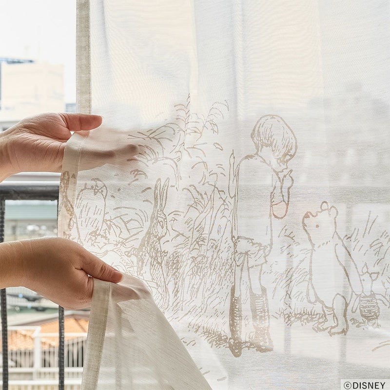 柔らかな光を受けるレースカーテンには、ひそひそと何かを内緒にしているプーさんたちの可愛らしい姿が。優しい線で丁寧に描かれたデザインは、まるで絵本を見ているよう。彼らの穏やかな「秘密の時間」をそっと覗き込めば、自分もプーさんたちの仲間入りした気分に。