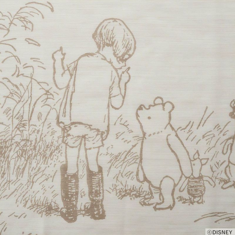 こっそりと内緒話をするプーさんと仲間たちを描いた、ボイルレースカーテン。そんな愛らしい光景を見ていると、なんだか心温まる秘密の物語の始まりそうな予感がします。窓辺に広がったプーさんの世界は、あなたの毎日に、そっと楽しさと安らぎを添えてくれることでしょう。