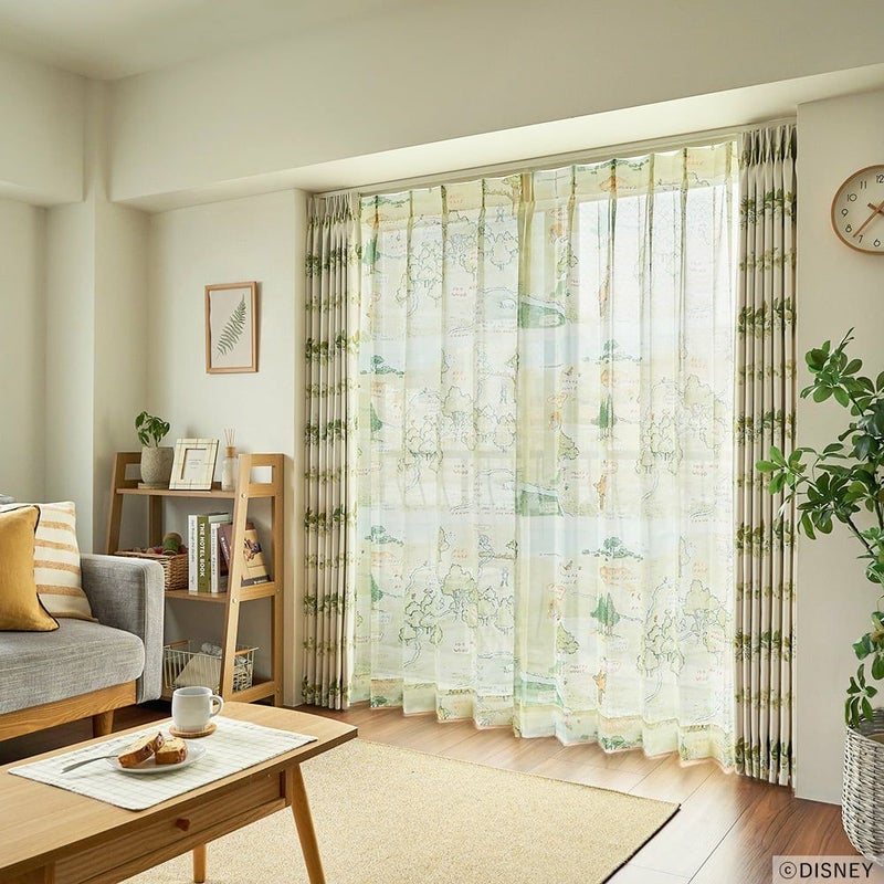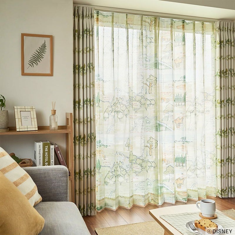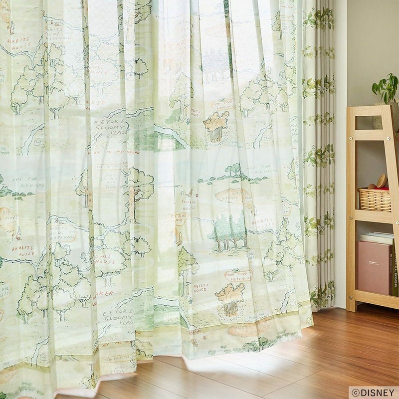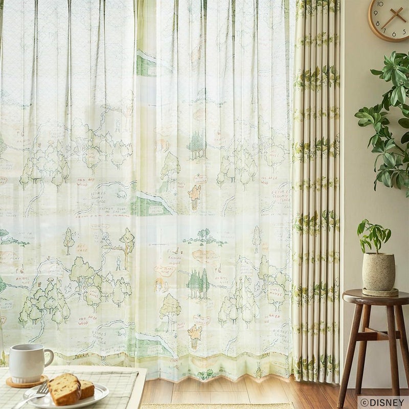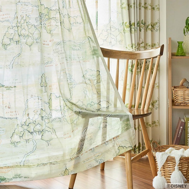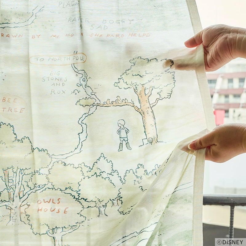 プーさんたちの住む100エーカーの森の地図を描いたレースのオーダーカーテン。物語の景色が目の前に広がり、心あたたまる窓辺へ。やわらかな光に包まれた地図を眺めながら、プーさんの世界を冒険しませんか?そんな心ときめくひと時が、あなたの毎日を楽しく彩ります。