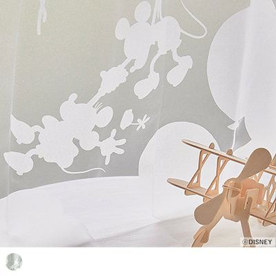 風船につかまり、楽しそうに遊ぶミッキーたちが描かれたデザイン。風が吹けばカーテンの中で本当に動き出しそうな、遊び心溢れるレースカーテンです♪