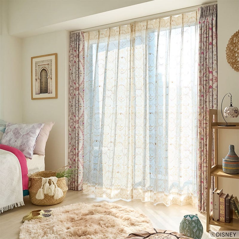 アラジンの世界観が息づく、美しいダマスク模様のレースカーテン。上品でエキゾチックなゴールドのダマスク模様は、思わず心奪われる魅力あふれるデザイン。非日常の美しさを、日常へ。心ときめく物語が始まります◎