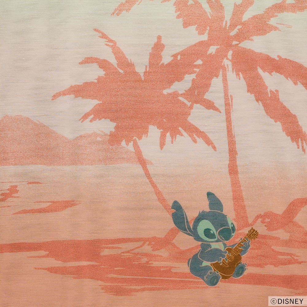 淡いグラデーションカラーに包まれながら、波打ち際に佇むスティッチ。 自然のハーモニーで彩る、ハワイアンスタイル。優しい光を纏いながら、心癒されるデザイン。