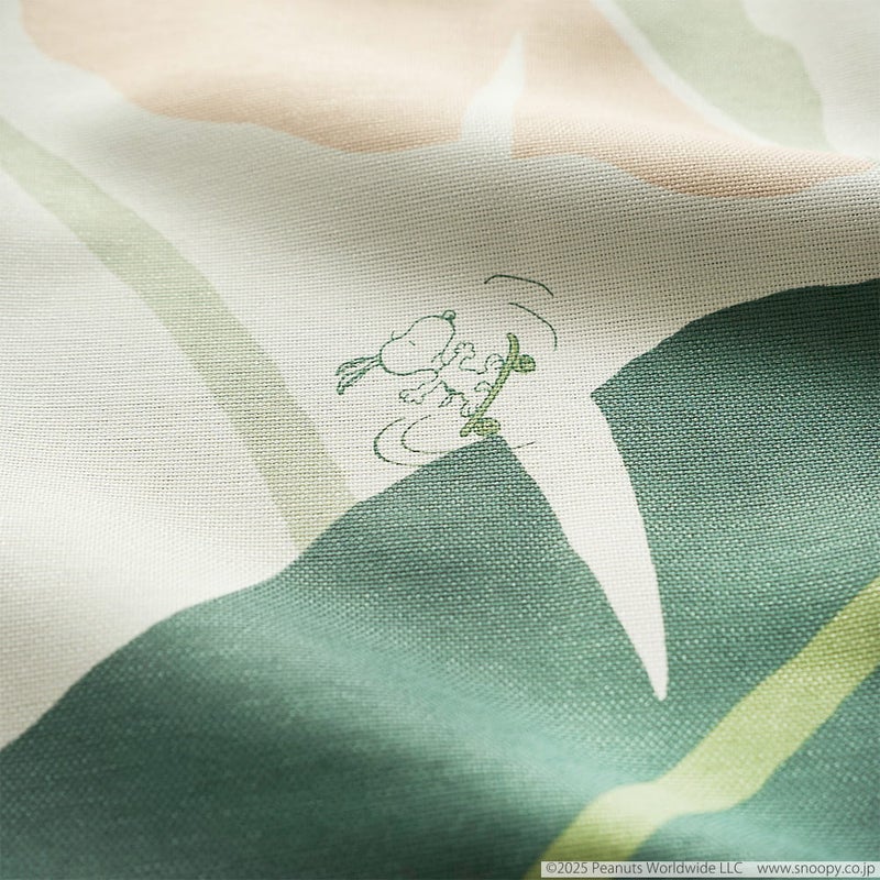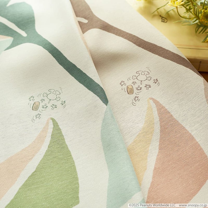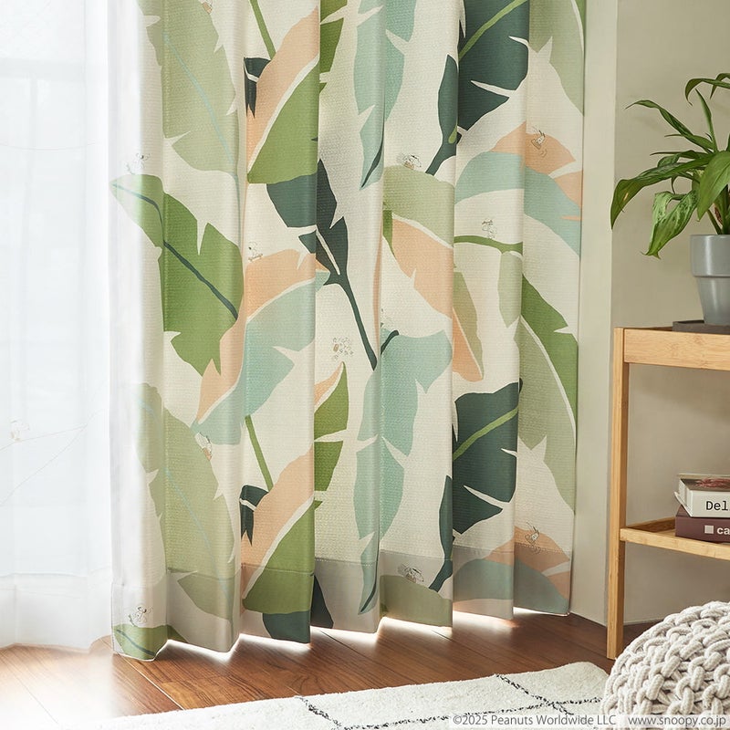 大きなリーフ模様に、楽しそうに遊ぶスヌーピーの姿が可愛いカーテン。ワイルドなリーフに囲まれ、まるで自然の中で深呼吸するような、ゆったりとした時間を与えてくれます。慌ただしい日常に、ホッとするひと時。やすらぎを感じる、心ほどけるカーテンです。