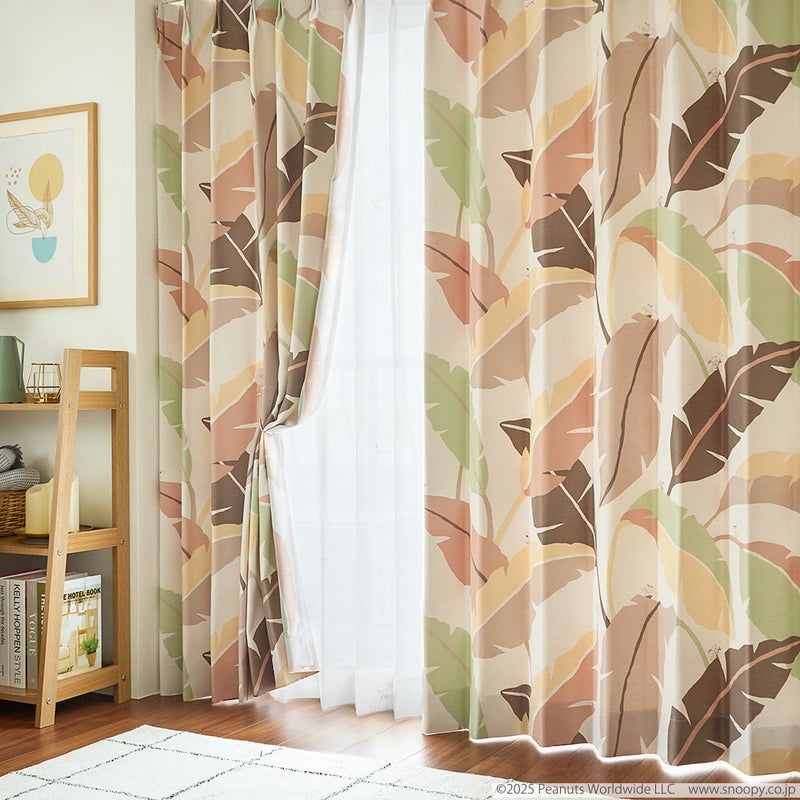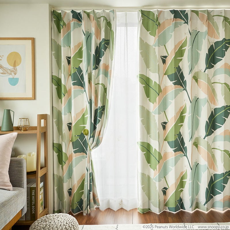 南国の風を感じる、スヌーピーリーフ柄カーテン