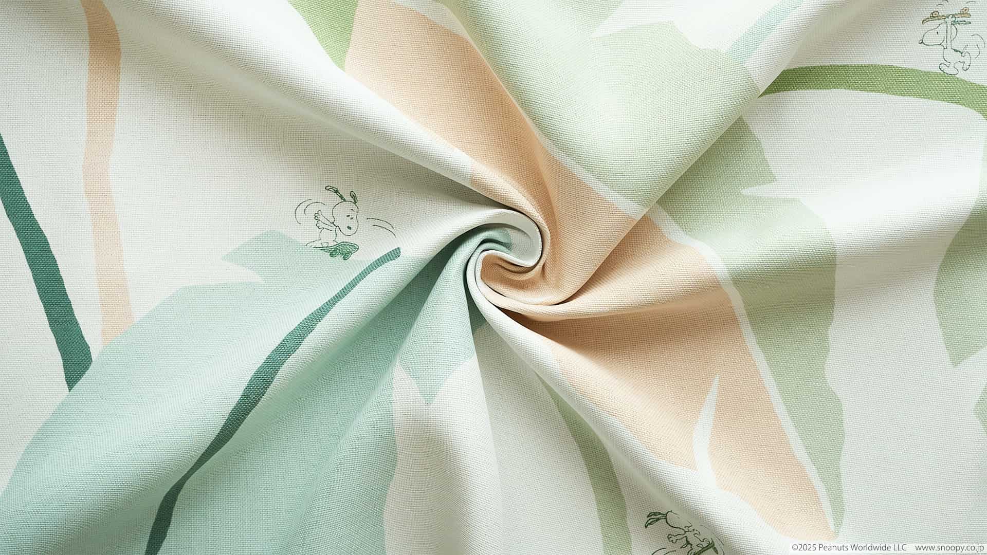 リーフと一緒に遊ぶスヌーピーが愛らしいカーテン「ワイルドリーフ」。自然のエネルギーに包まれながら、ゆったりと深呼吸するような時間を届けてくれる一枚です。慌ただしい毎日に、肩の力をふっと抜いてくれるような心地よさ。暮らしの中にそっと寄り添い、気持ちをやわらかく解きほぐしてくれます。