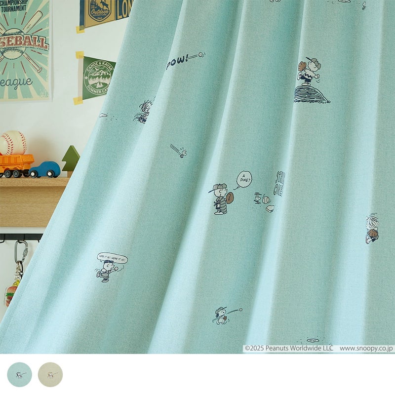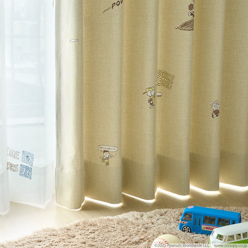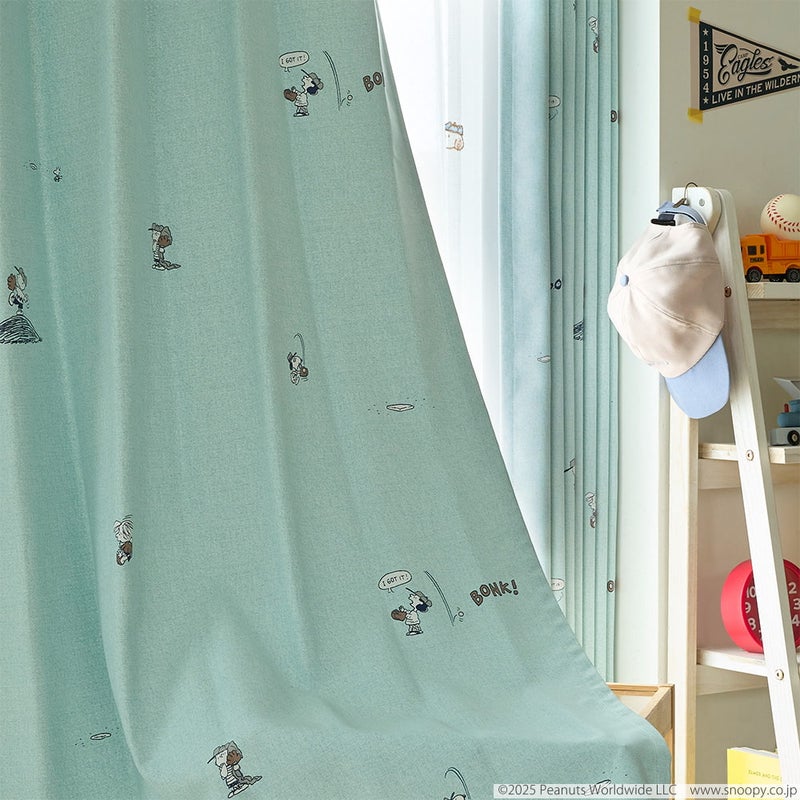 スヌーピーと仲間たちが元気にプレイする、ベースボール柄のカーテン。チームワークあふれるデザインが、お部屋に明るさと楽しさをプラスします。毎日がちょっとワクワクする、そんな空間に◎