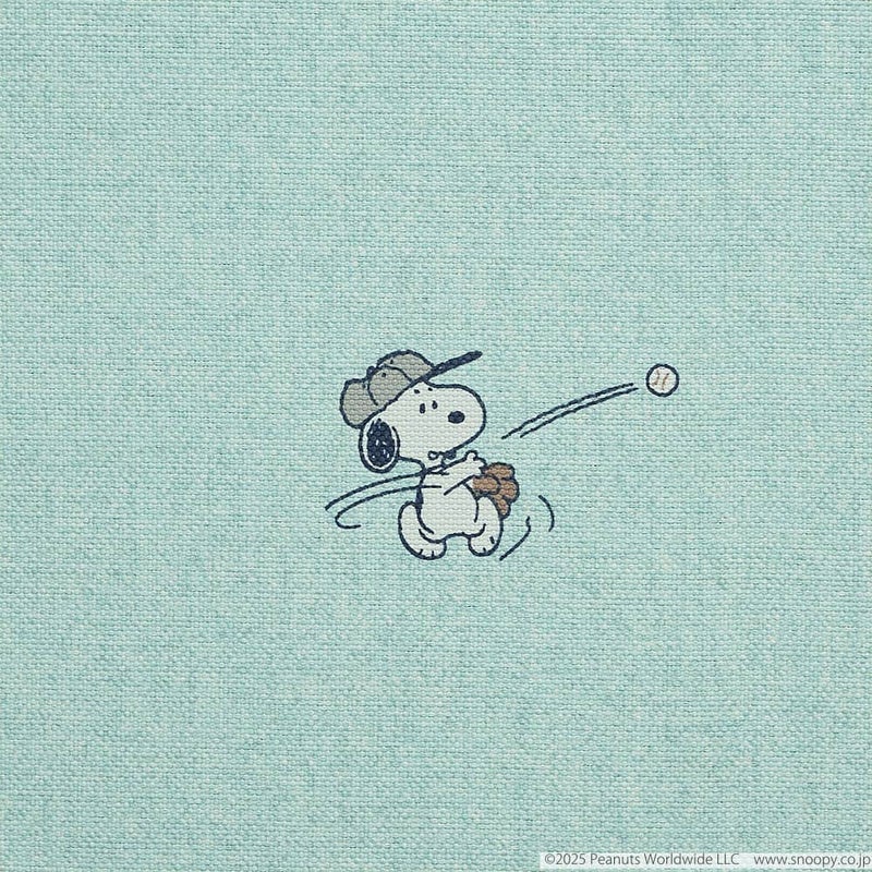 元気いっぱいに野球をするスヌーピーたちの姿を、インクジェットプリントで細部まで美しく再現。ポジションについた仲間たちの表情やポーズ、グローブやボールの動きまで、まるで絵本のワンシーンのように描かれています。
