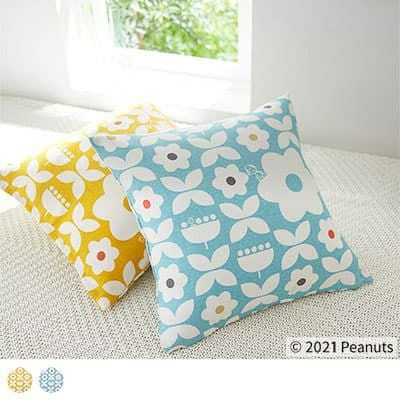 ぱっと目を引く、可愛いクッションカバー。もっとわくわくしたいなら、オーダーカーテンとラグもお揃いで。とっておきのスヌーピールームでの暮らしを始めましょう!