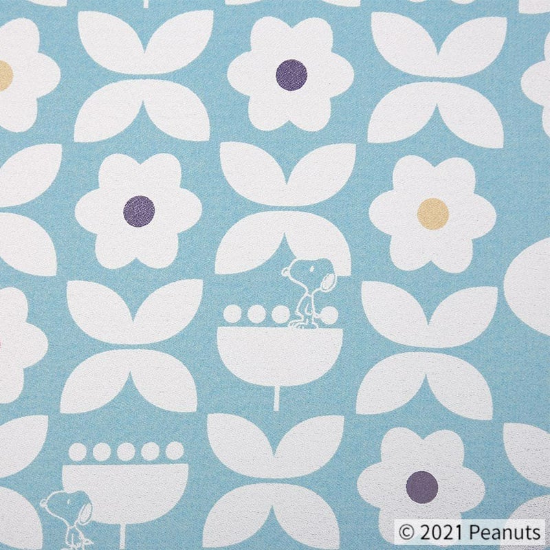 幾何学風にアレンジされた花柄とレトロな色合いが、アメリカのビンテージファブリックを思わせるレトロポップなデザイン。花の迷路を、スヌーピーが元気に探検中!