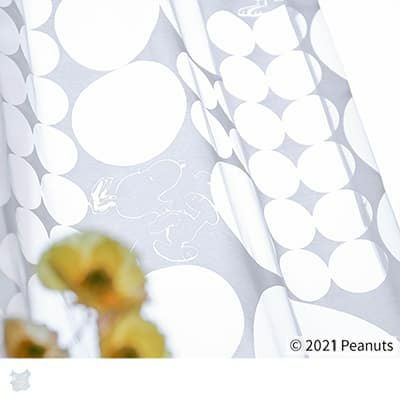 レース生地に透かし模様を施すオパールレースならではの、繊細で美しい透明感が魅力のオーダーカーテン。モダンに描かれたスヌーピーのデザインが、いつもの空間をより特別で洗練された雰囲気へと導いてくれます。