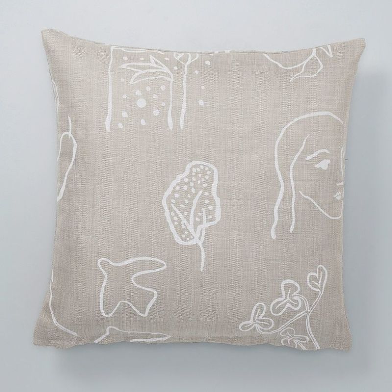 淡いカラーのおしゃれな北欧デザインを麻風の生地に描いたクッションカバー