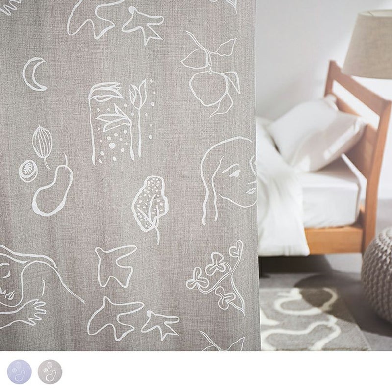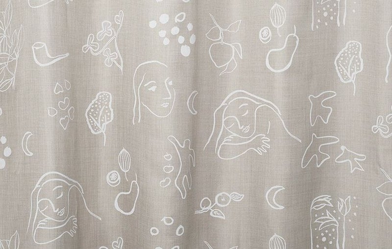 ナチュラルな雰囲気を盛り上げるリネンタッチのドレープカーテン。そこにブラシ・ペインティングのタッチそのままに、白いラッカープリントで柄を表現しました。クラフト感を感じられる、優しい北欧デザインカーテンです。