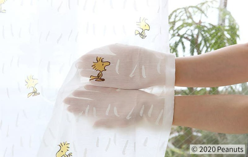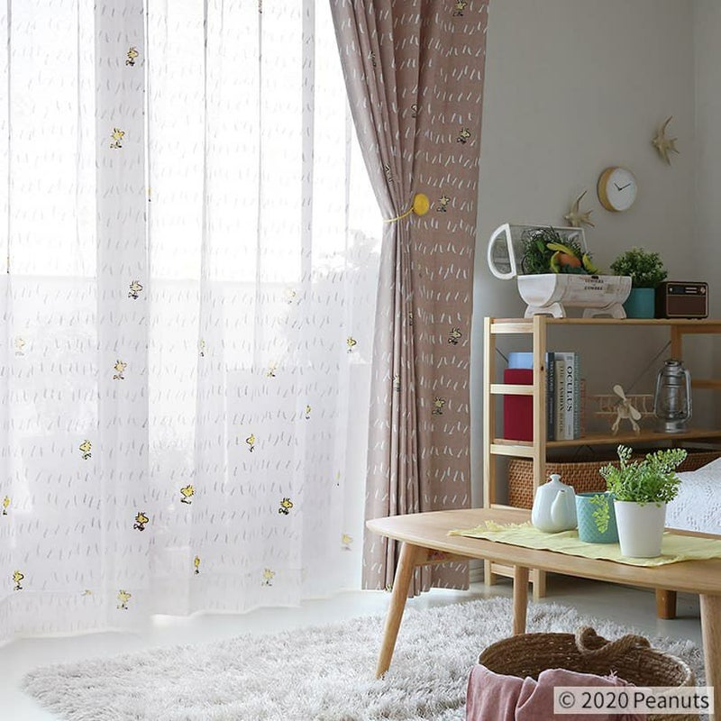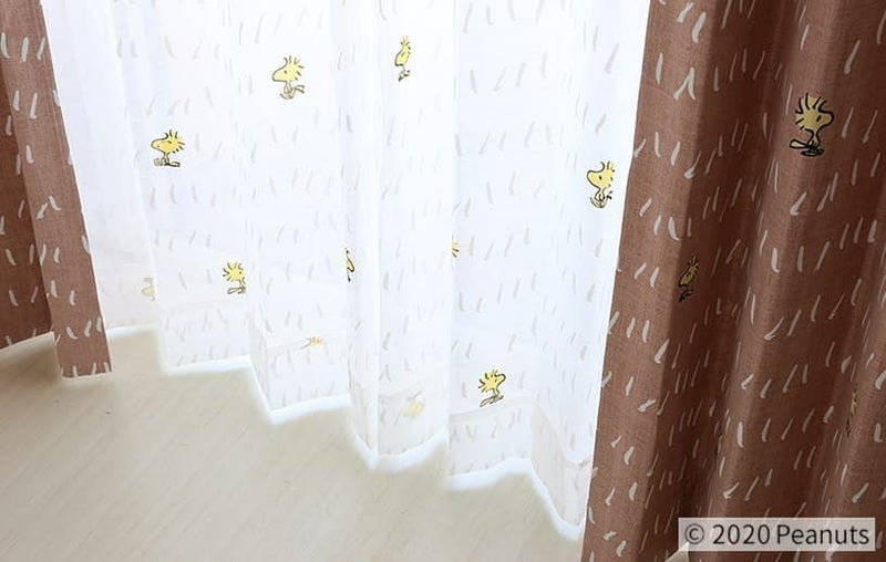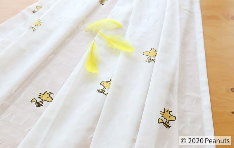 スヌーピーの大親友、ウッドストックが散りばめられたレースカーテン。