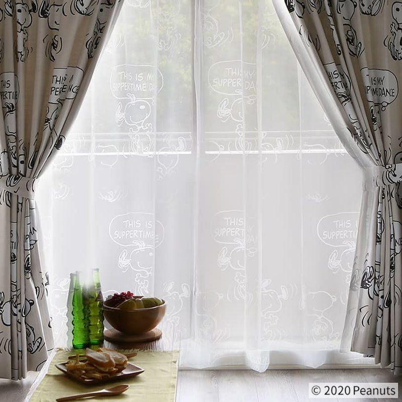 待ちわびた食事の時間にはしゃぐスヌーピーがかわいいレースカーテン