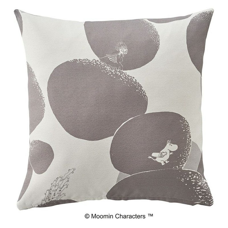 ドットみたいな岩とムーミン達を描いた北欧モダンなクッションカバー