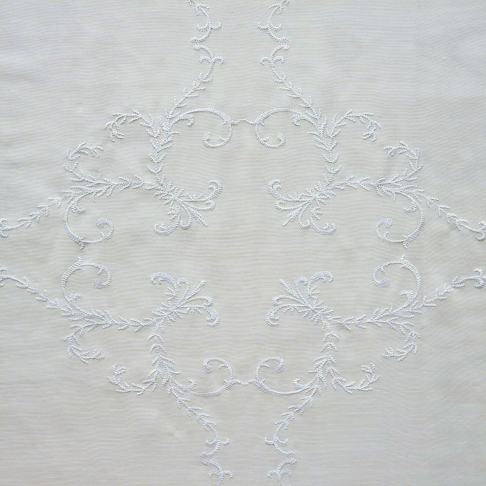 アンティークな印象のスカラップが華やかでエレガントな刺繍レースカーテン。光が差し込むと美しいチュールは、繊細な柄を浮かび上がらせ可憐なおしゃれを演出します。トルコ刺繍等、緻密なデザインの刺繍はクラシックな雰囲気のコーディネートにも。