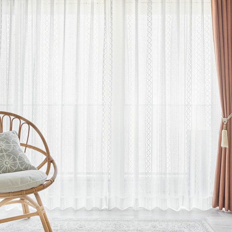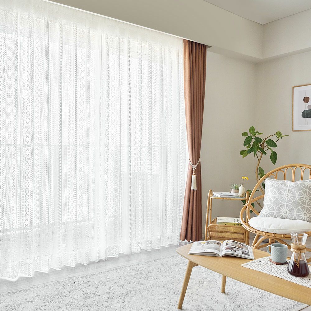 編みデザインのレースカーテンで、懐かし可愛いお部屋に