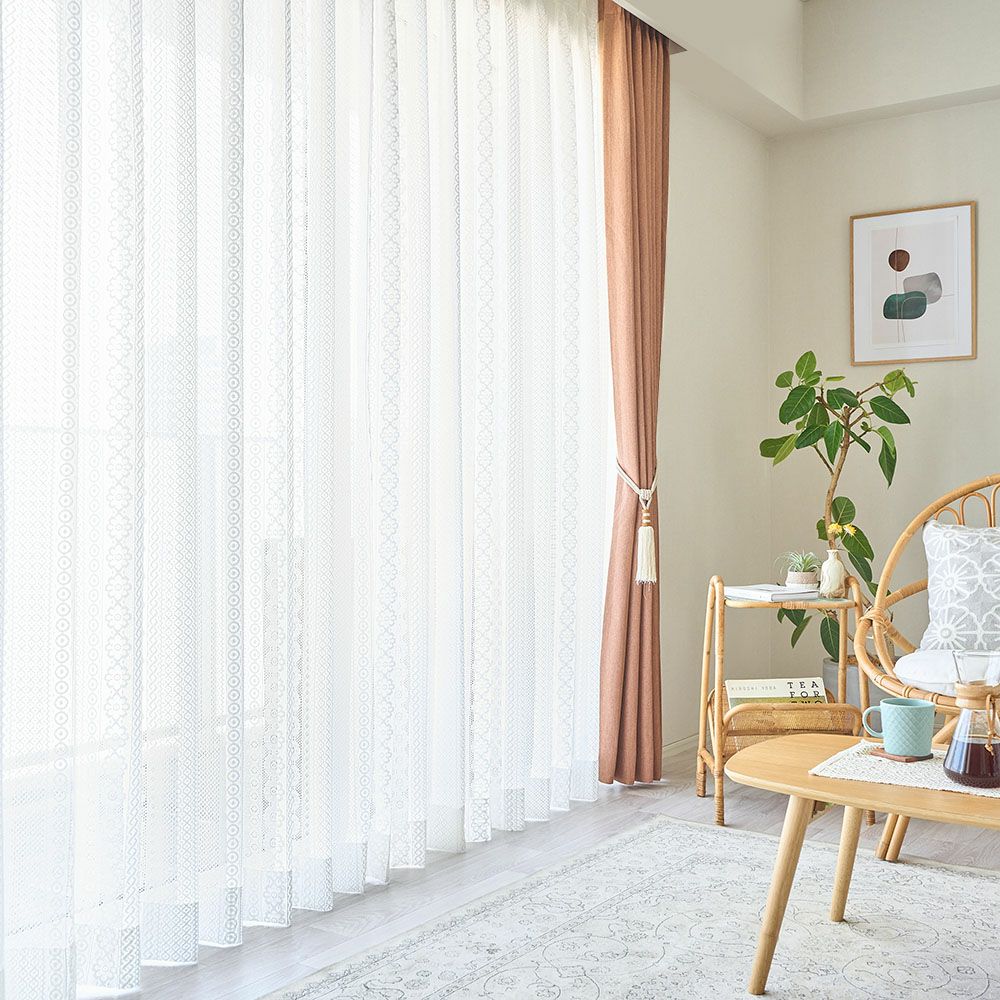 小さくて愛らしいお花のデザインと、縦に連なる繊細な幾何学柄。ほんのりレトロな雰囲気を感じる可愛らしいレースカーテンの「ネオス」。そんなネオスは花粉キャッチの機能付きという嬉しいポイントも!デザインにも機能にもこだわりたい、そんなあなたにおすすめの1枚です。
