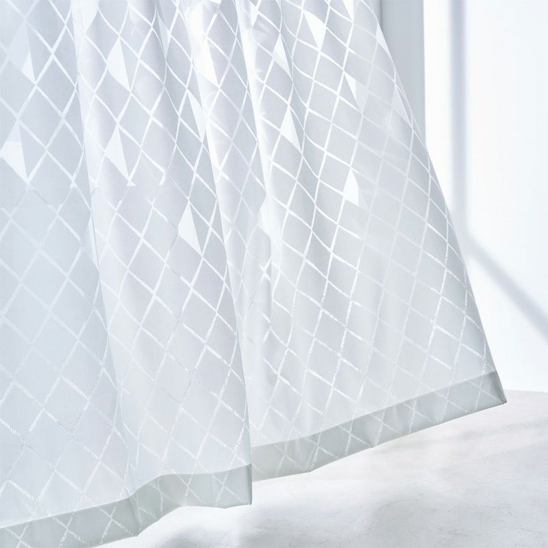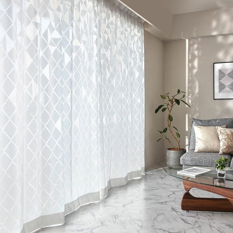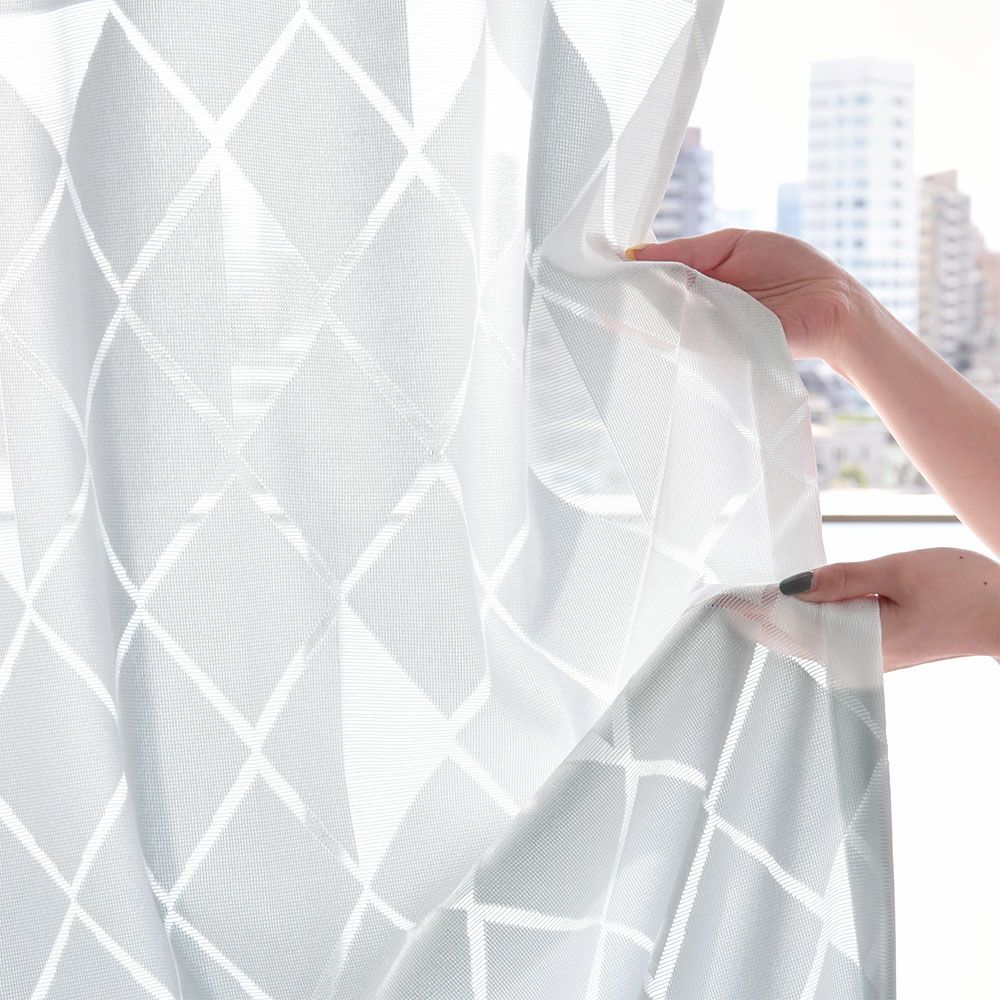 テキスタイルの隙間から室内に降り注ぐ、美しい光。透かし模様デザインを通して、床や壁に映し出される幻想的なシルエット。そんな、光と影の美しさを体現するレースカーテン「イリオス」。カットワーク風の幾何学柄が、ホワイトベースの洗練されたインテリアによく映え、空間をワンランク上へと導きます。