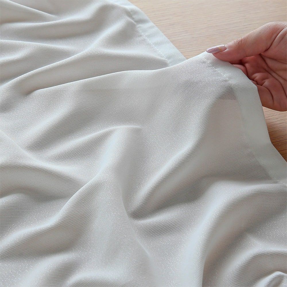 ふわりぃシリーズの魅力はなんといっても、この生地の柔らかさ。機能がたくさんついたレースカーテンは、生地が厚くなってしまいがちなのに、本当にふんわり柔らかな手触り。