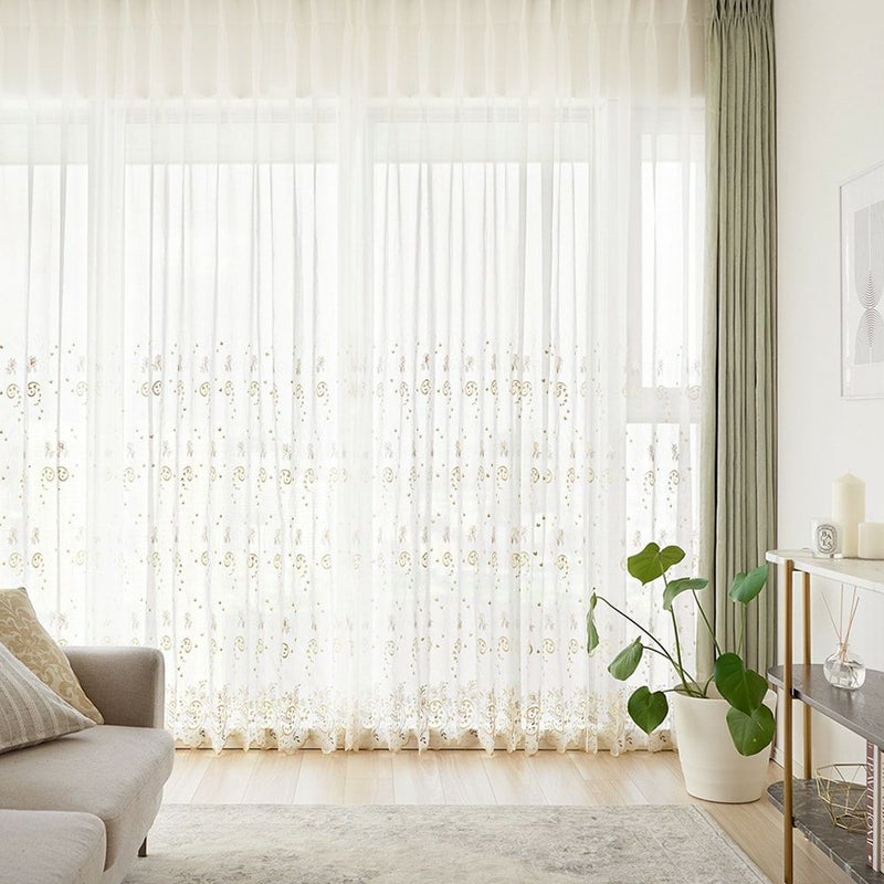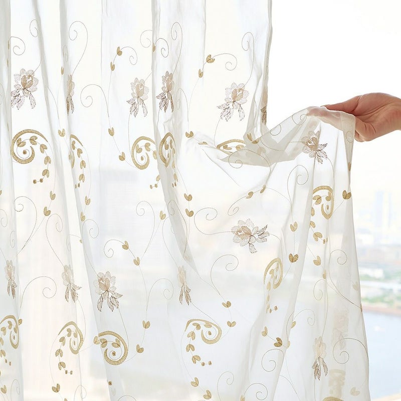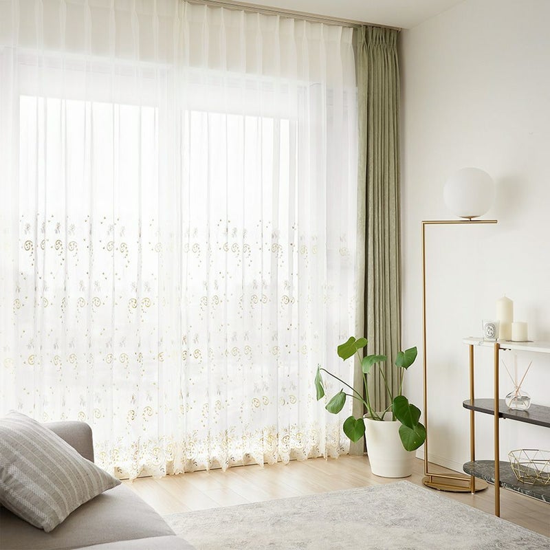 ベースは程よい透け感のあるボイル生地。だからこそ、差し込む日差しもふんわりと優しい印象になります。ほのかに透ける外の景色と、柔らかな刺繍を存分にお楽しみください。