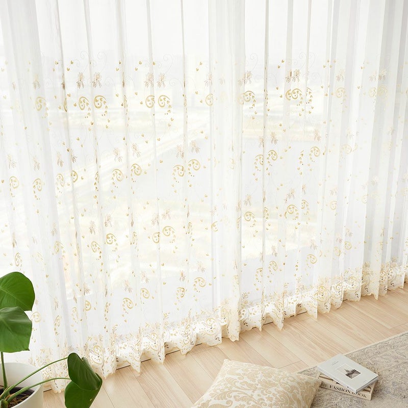透け感のある薄いボイル生地に、シャンパンゴールドの艶やかな刺繍糸が施されている「レジーナ」。上品なデザインでありながら、可愛らしさも兼ね備えた魅力的なトルコ刺繍レースカーテンです。更に、裾から目線の高さまで、贅沢に刺繍が施されたデザインなので、窓辺でトルコ刺繍を存分に楽しむ事が出来ます。上品でほんの少し可愛い、そんな乙女心を揺さぶる1枚です。