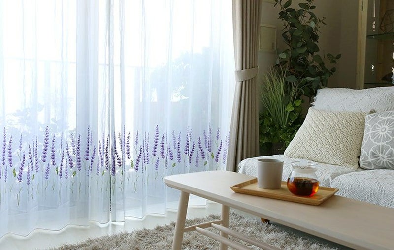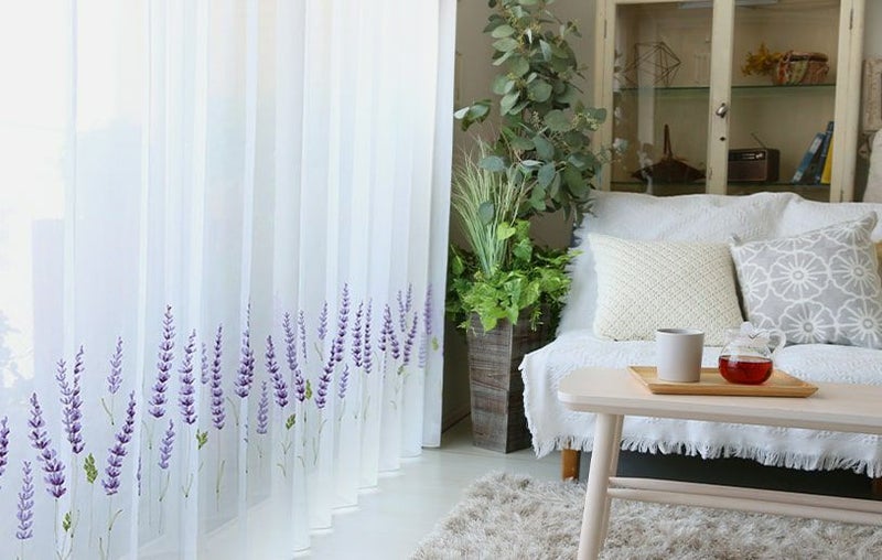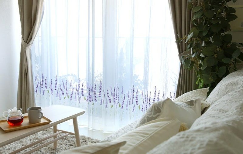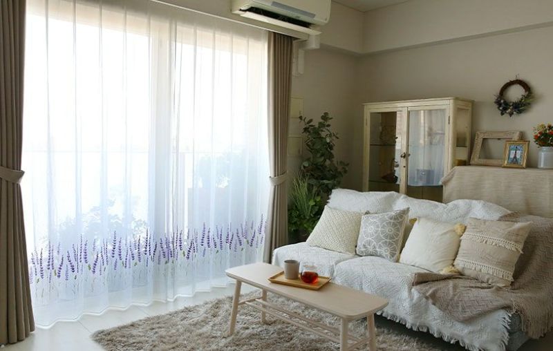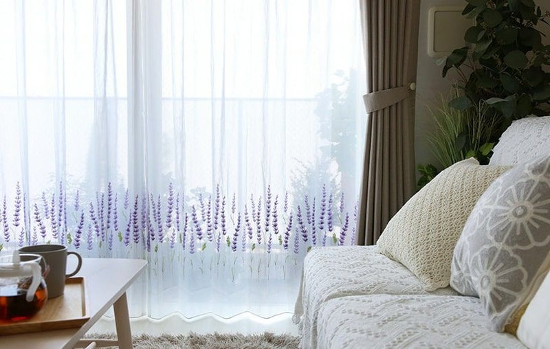 ラベンダーレースカーテンでつくる、色合い優しいインテリア