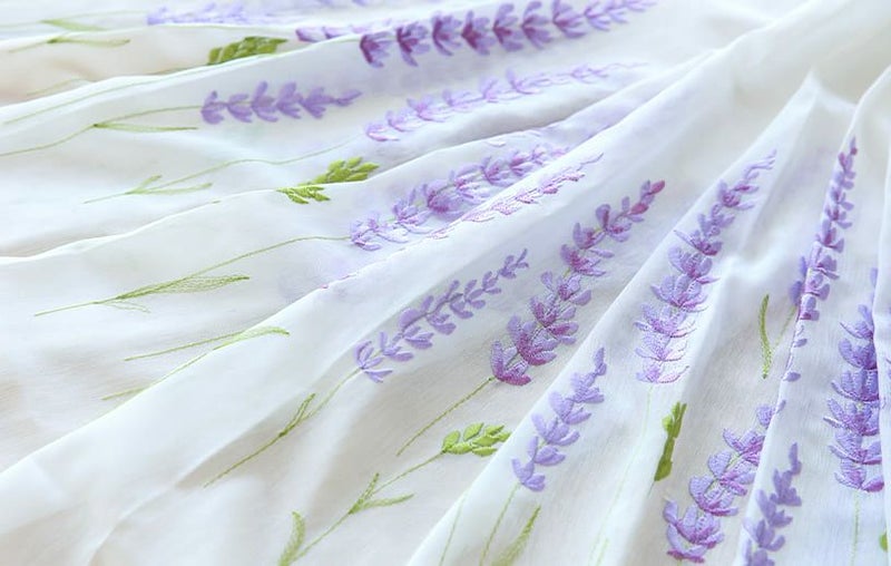 ラベンダーデザインが優しい雰囲気のレースカーテン「アロマ」には、ホワイトを基調とした