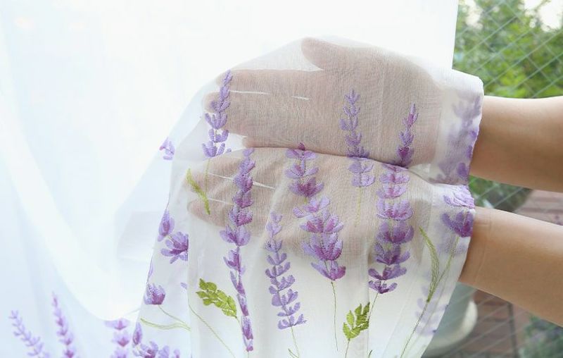 しなやかに美しく咲き誇るラベンダーたちは、美しく上品な佇まいです。レースカーテンが風に