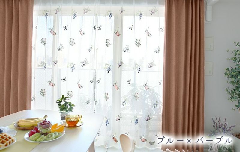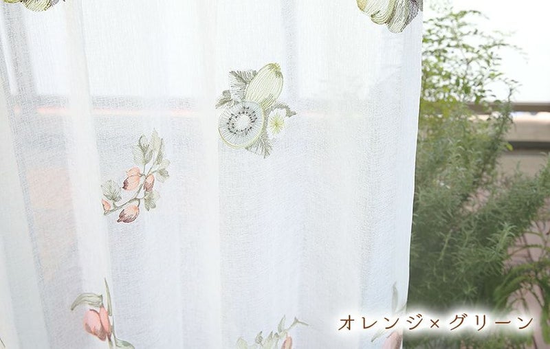 これが刺繍…?フレッシュ感あふれるフルーツが彩るレースカーテン
