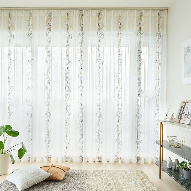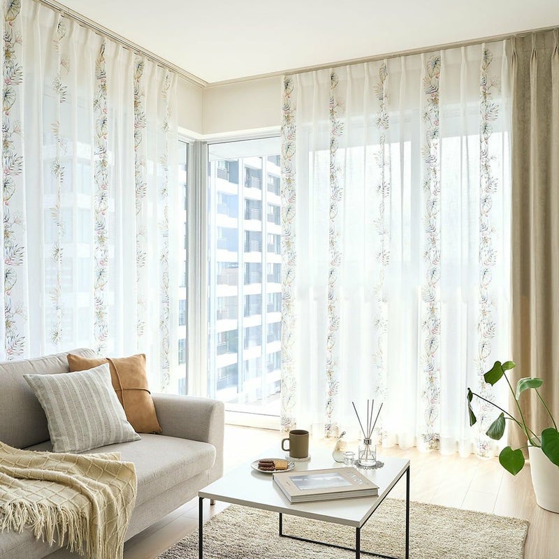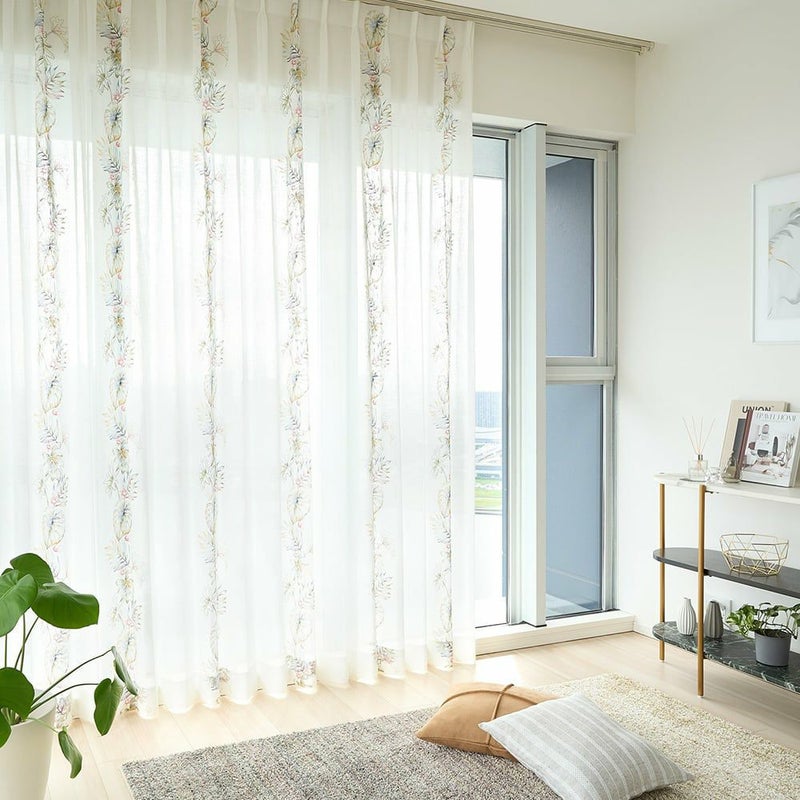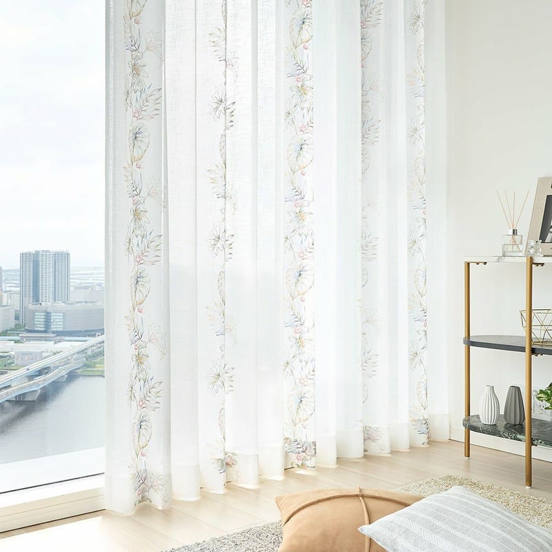 上質さをも纏うボタニカルなレースカーテンだから、ナチュラルで上品なインテリアとも相性が良いのです。シックでモダンな雰囲気から、心地よいナチュラルテイストまで。ほどよい存在感を放ちつつ、お部屋に馴染んでくれるレースカーテンです。