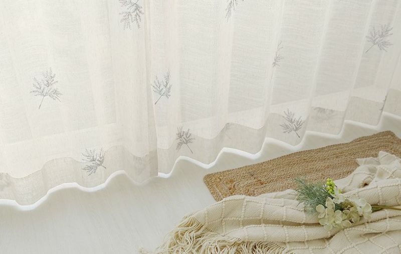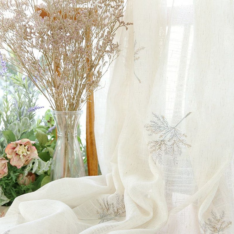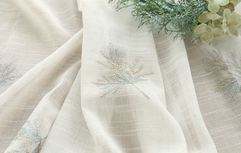 天然素材の風合いを楽しむ、植物モチーフの麻混エンブロイダリーレースカーテン