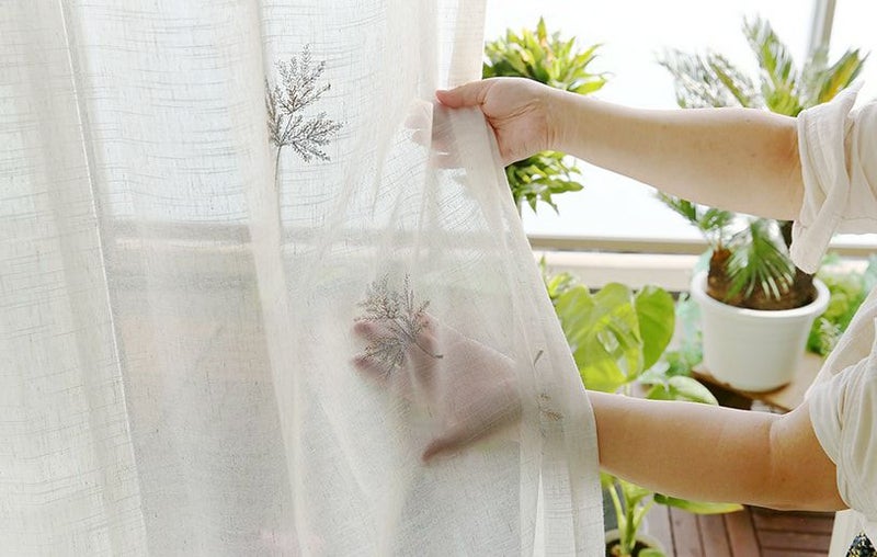 麻混のエンブロイダリーレースカーテンで、自然とともに暮らす窓辺
