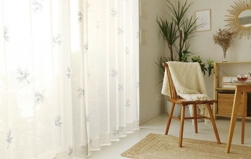 木目の家具や植物との相性が抜群のエンブロイダリーレースカーテン