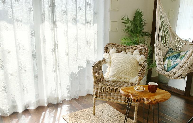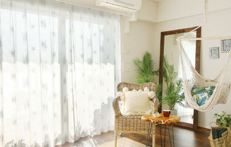 木目の家具や植物との相性が抜群のエンブロイダリーレースカーテン