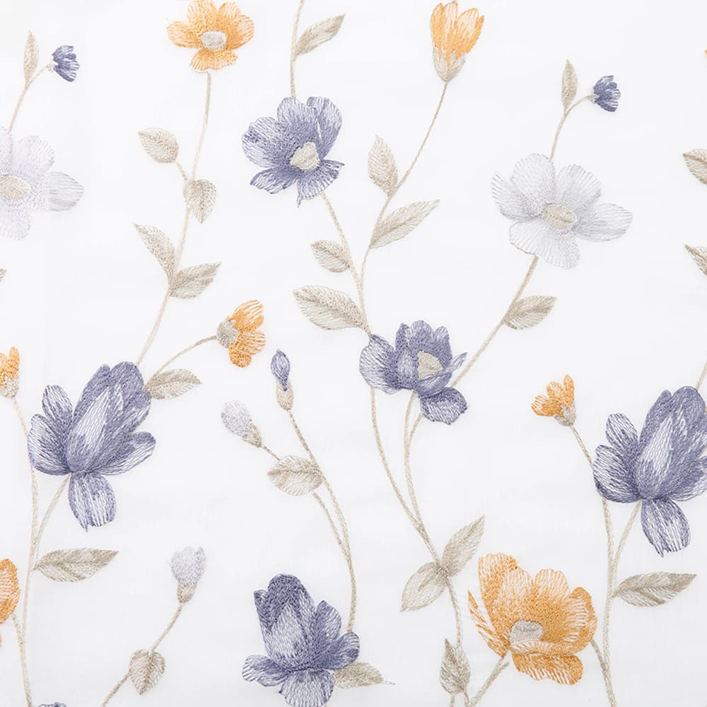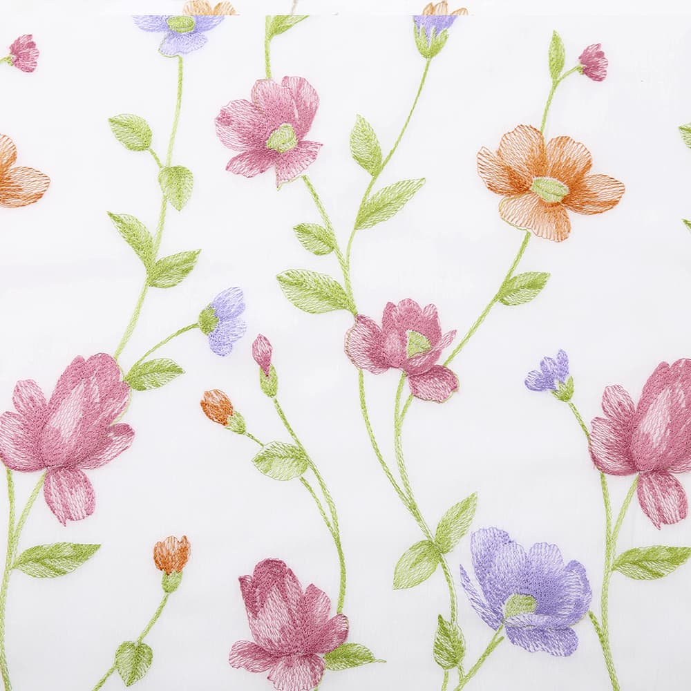 まるでフラワーガーデンを散歩しているような気持ちにしてくれる、華やかな刺繍レースカーテンです。生き生きと描かれた花々は、窓辺も明るい印象にしてくれます。