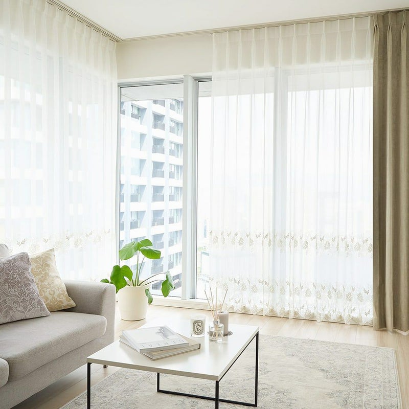 ほどよい透け感の刺繍レースカーテンを窓辺に飾ると、それはまるで窓辺を彩るアクセサリーのよう。そんな美しい刺繍レースが、日々の生活に優雅で特別な彩りを添えてくれます。