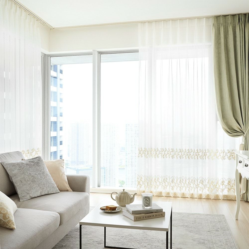 華美過ぎず、ナチュラルなインテリアともマッチする幻想的な刺繍のデザインが、日常にアクセントを加えてくれる。窓辺を眺める何気ない時間を、特別なひと時にしてくれる優美な刺繍レースカーテンで、あなただけの至福の時間を。