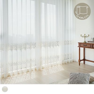 横幅の大きなカーテンには生地の「巾継ぎ」が入ってしまいます。しかし、生地を横方向に使用するシームレスカーテンなら、大きなサイズでも巾継ぎ無しの美しい仕上がりに。どこまでも美しく広がる刺繍レースカーテンを、ぜひ大きな窓でご堪能下さい。