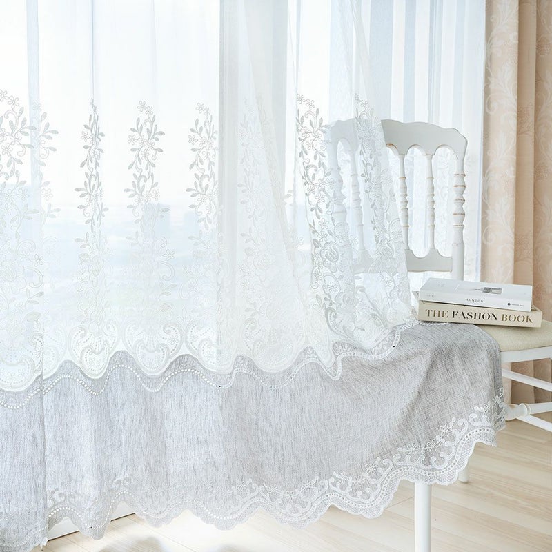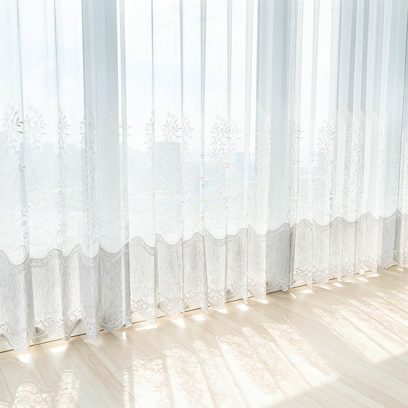 切り替え風のトルコ刺繍レースカーテン